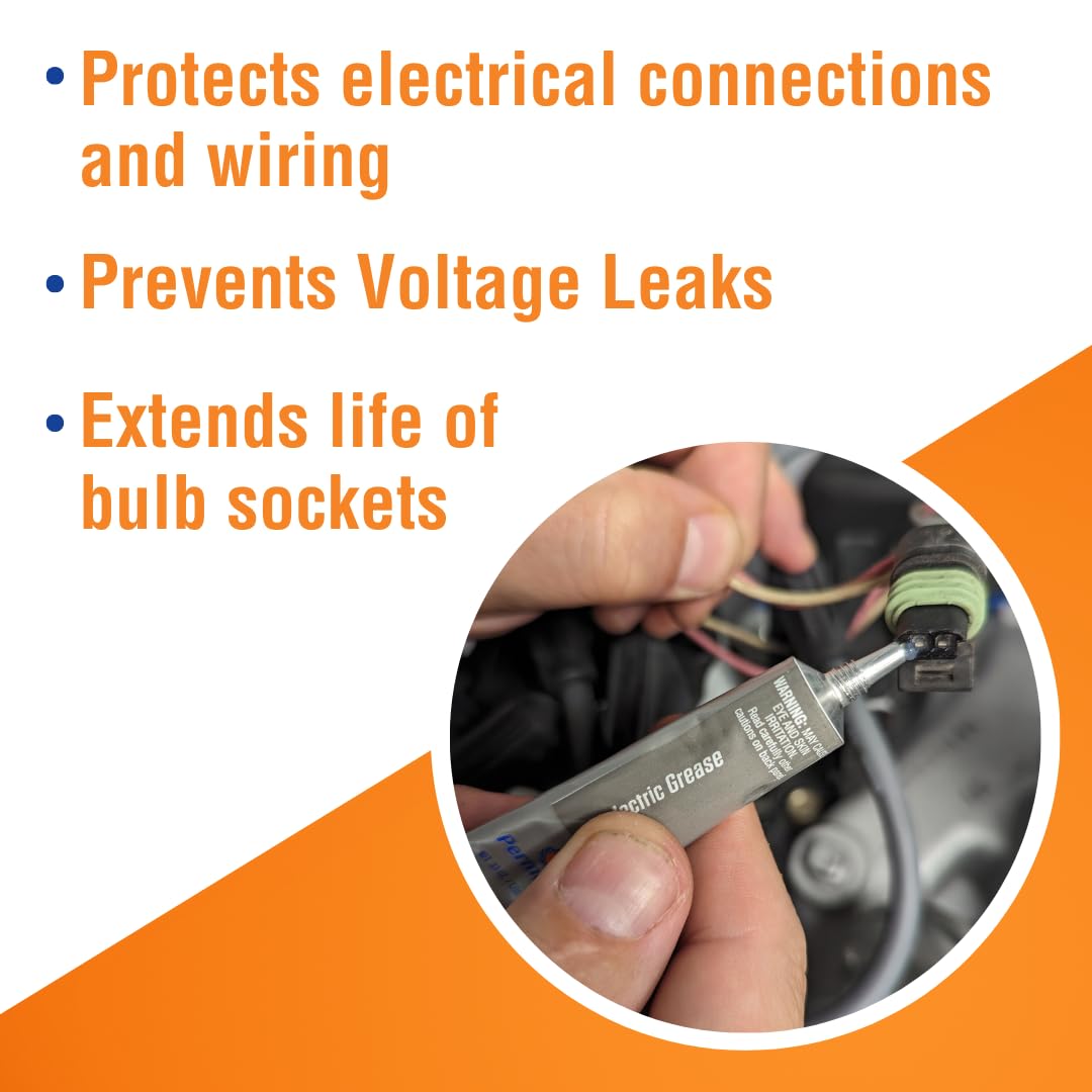 Protects electrical connections and wiring from salt, dirt, and corrosion. Extends the life of bulb sockets. Prevents voltage leakage around any electrical connection. Also prevents spark plugs from fusing to boots. Required for modern high-energy ignition systems.