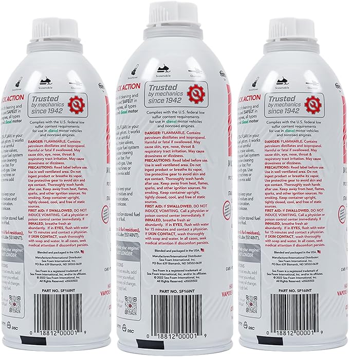 Sea Foam Engine Tune Up. Works and performs instantly pure petroleum product for use in all gasoline and diesel engines, 2 and 4-cycle. Cleans dirty engine parts internally by removing harmful gum, varnish, and carbon buildup. Removes moisture from oil crankcases and fuel tanks. Oxygen sensor safe stabilizes and conditions fuels to prevent stalling. Excellent for engine storage