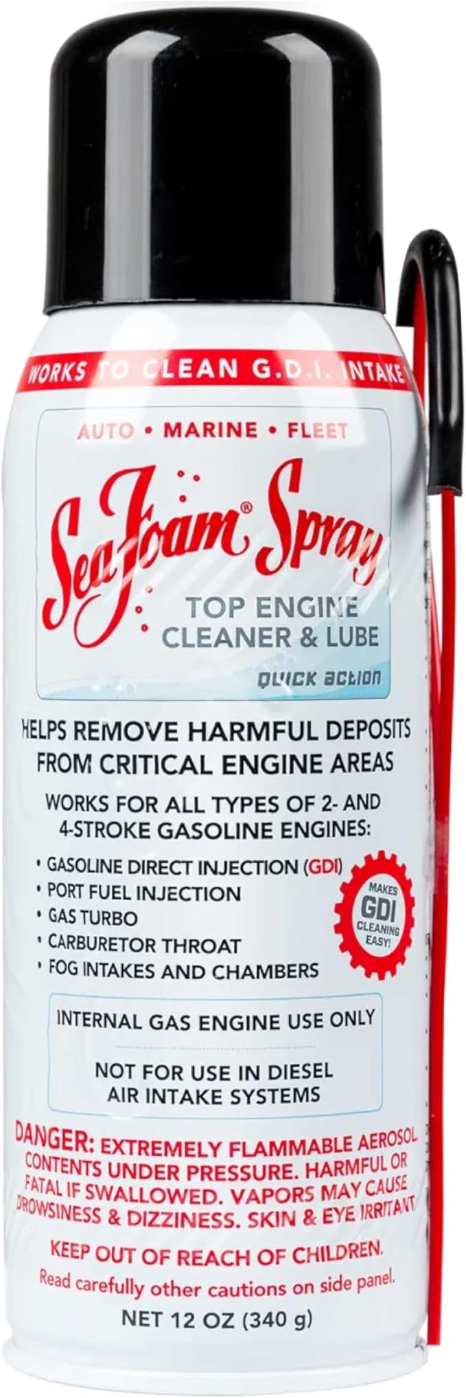 • Sea Foam Spray cleans and lubricates critical upper engine areas where fuel cleaners can’t reach