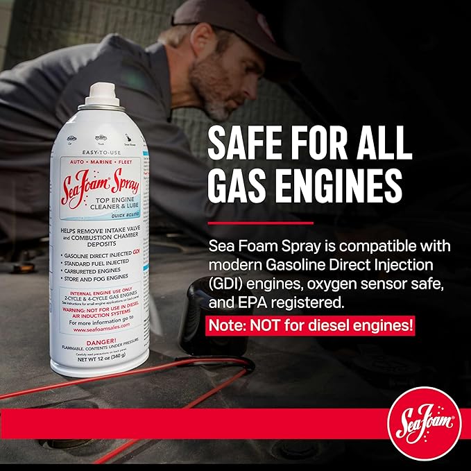 Sea Foam Spray is especially important in modern Gasoline Direct Injection (GDI) engines for cleaning and lubricating critical upper engine areas where fuel cleaners can’t reach.