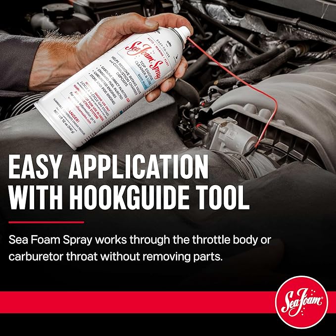 • Use Sea Foam Spray to clean critical upper engine areas where fuel cleaners can’t reach. Safely removes intake valve and chamber deposits. Apply through the gas air intake or the carburetor throat.